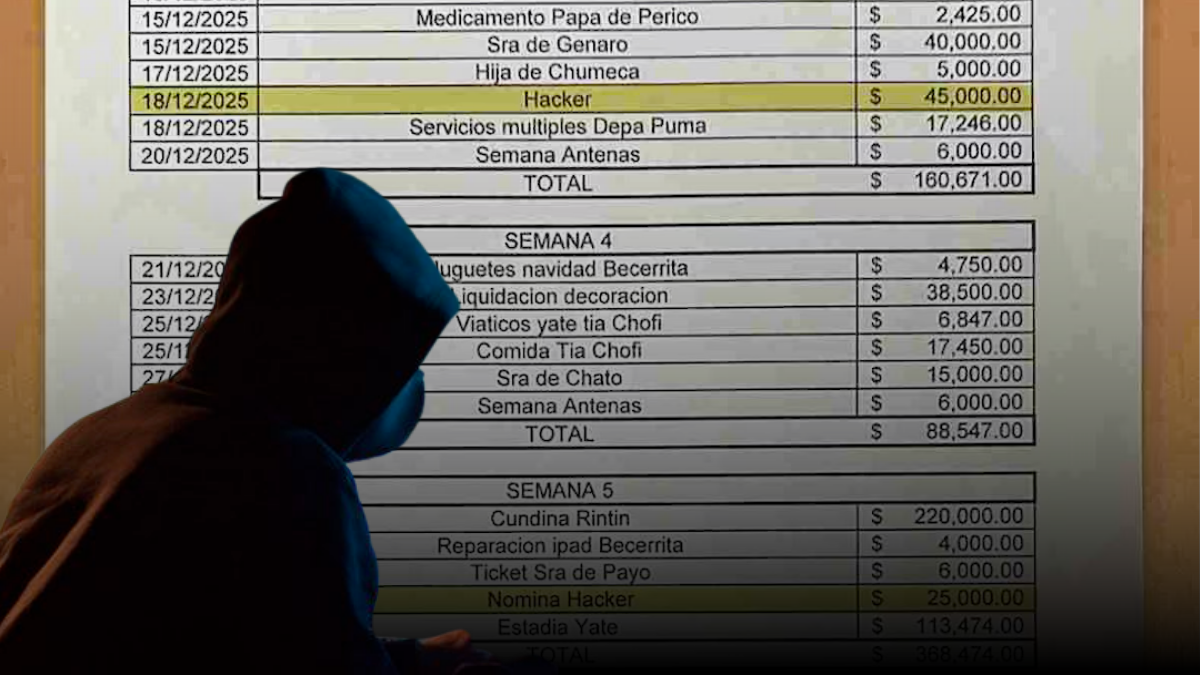 Los documentos detallan que algunos de estos expertos recibían pagos individuales superiores a los doscientos mil pesos por semana. Además del sueldo base, la organización cubría gastos de mantenimiento para equipos de cómputo y vehículos personales. Incluso existen registros de viáticos y dinero destinado a la compra de despensas, etiquetado bajo el concepto de mandado hacker.